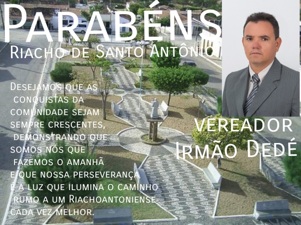 Vereador Irmão Dedé , parabeniza a cidade de Riacho de Santo Antônio, pelosseus 26 anos de emancipação política.
